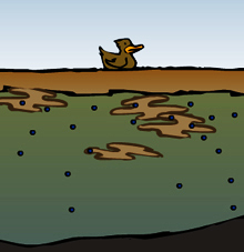 Unsere Abwässer haben in Ökosystemen wie Seen und Teichen eigentlich nichts zu suchen. Welche Folgen eine solche unkontrollierte Phosphor- und Stickstoffzufuhr für das biologische Gleichgewicht des Gewässers hat, kann hier interaktiv erkundet werden: