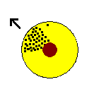 parallel zur Körperachse eine Reihe dieser Partikel, die zusammengenommen