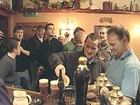 [Bild Vergrößerung] Wer zu welcher Mannschaft gehört, bestimmte früher der Geburts- und damit der Wohnort - also Up-the-Gates oder Doon-the-Gates. Heute ist nicht mehr die Adresse sondern die Familienloyalität wichtig. War der Großvater ein Uppie, ist der Enkel auch einer. Mannschaftsfarben oder andere Erkennungszeichen gibt es keine. Jeder Spieler weiß, wer zum wem gehört. Darüber hinaus bereiten sich die Männer schon Wochen vor dem Spiel intensiv mit Besuchen im jeweiligen Uppie- oder Doonie-Pub vor.