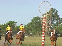 Vor dem Torwurf steht der Kampf: gegnerische Attaken hoch zu Pferde, man nennt sie dort "chinchada". Es erinnert ein wenig wie Basketball zu Pferde.