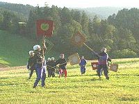 Hornussen ist ein Wettkampf auf freiem Feld, der in seinen Grundzügen an das amerikanische Baseball erinnert.