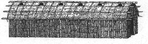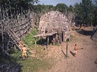 Charakteristisch für die Siedlungen der Waldlandindianer waren die mit Rinde gedeckten Langhäuser, in denen bis zu 200 Mitglieder einer Sippe wohnten.