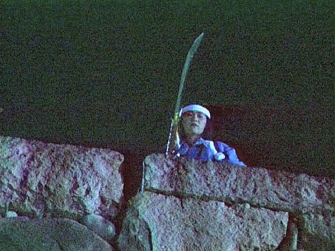 kämpferin auf einer Mauer.
