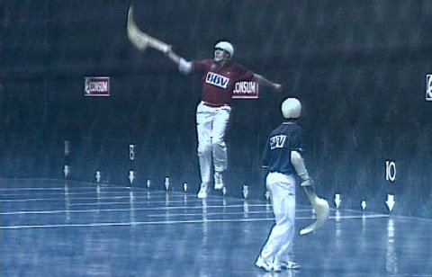 Ein Spieler schleudert einen Ball