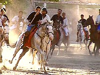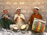 Und last but not least gehört die Musik unbedingt zum Polospiel. Ein Polospiel ohne Musik ist nicht denkbar. Die Musiker, Surenai-Spieler (das sind Klarinettentöne) und Trommler mit Kessel- oder Zylindertrommeln - begleiten die Polospieler; sie spielen jedem der bekannteren Spieler eine eigene Erkennungsmelodie. Es ist eine besondere Ehre für sie, Musik zum Spiel auf dem Shandur-Pass zu machen.