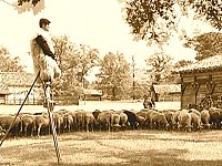 [Bild Vergrößerung] Vor allem Schafhirten hielten sich dort auf; sie benutzten Stelzen, um ihre Herden besser zu überblicken, um sich auf den sumpfigen Weiden besser bewegen zu können, sich die Füße nicht nass zu machen und drohende Gefahren wie Wölfe schon aus der Ferne zu erkennen.