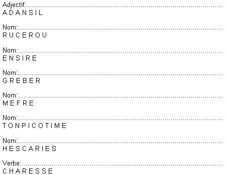 Reconstituez les mots de la grille à partir des lettres données. Un nouveau mot apparaîtra verticalement.