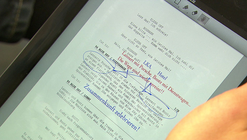 Manchmal werden ganze Filmszenen in Frage gestellt, wenn beispielsweise die Frage auftaucht, ob ein weiteres Motiv oder ein weiterer Schauspieler unbedingt notwendig sind oder ob sie nicht aus Kostengründen gestrichen werden könnten. Beim Tatort HAL fragt der Produzent Nils Reinhardt, ob die Informationen, die im Bild 68/69 (Café) vermittelt werden, nicht auch anders – und damit kostengünstiger - transportiert werden könnten. Dann muss der Drehbuchautor Niki Stein erklären, welche Funktion das Bild für die Dramaturgie des Films hat.