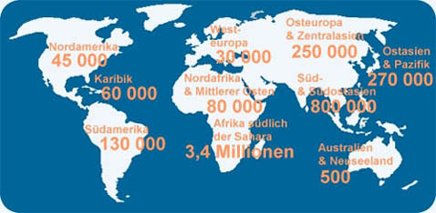 Im Laufe der Jahre ist AIDS zu einer der fürchterlichsten Geißeln der Menschheit geworden. Bis Ende des Jahres 2000 waren nach Angaben der WHO 25 Millionen Menschen gestorben. Etwa 40 Millionen sind infiziert oder schon erkrankt. Am meisten sind die ärmeren Länder betroffen, allen voran Südafrika. Doch auch die reicheren Nationen melden jedes Jahr beunruhigende Zahlen an Neuinfektionen.