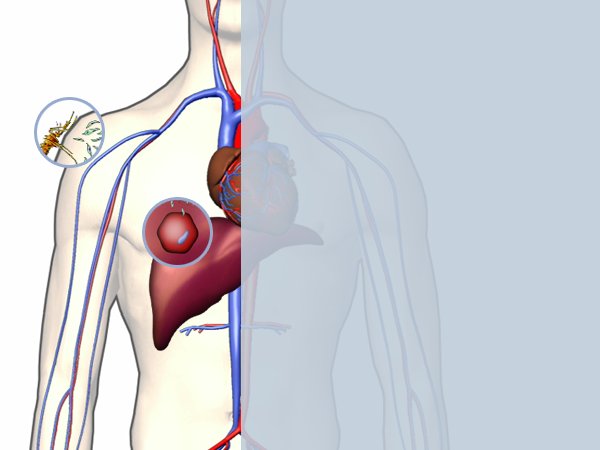 It takes only 30-60 minutes for the sporozoites to travel to the liver and penetrate the cells there. At this point, the immune system can intervene by forming antibodies. |