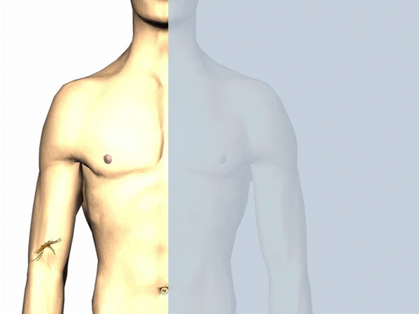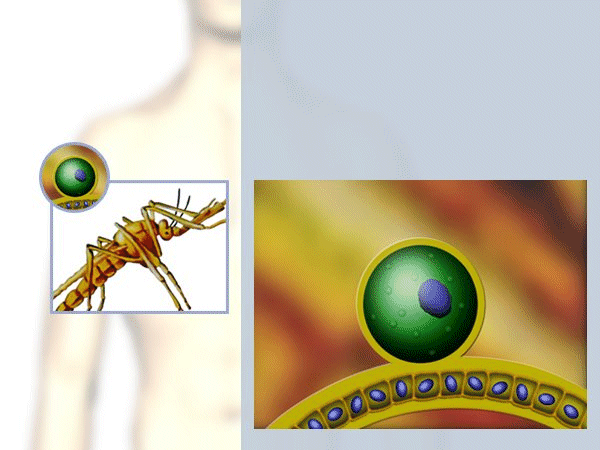 When an infected anopheles mosquito bites someone, plasmodia enter the human's blood system along with the insect's saliva. At this stage, the parasites are known as sporozoites. They are the start of the asexual reproduction. |