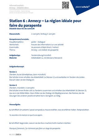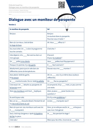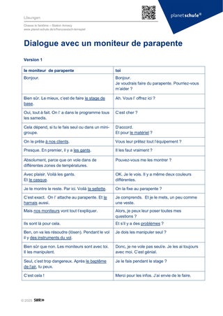 Vor dem Gleitschirmflug stehen die Pronomen – sie werden im Dialog mit dem Verleiher geübt, der erklärt, welche Ausrüstung nötig ist.