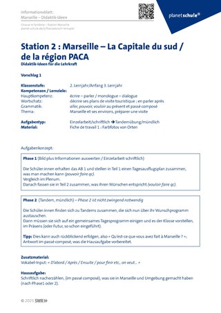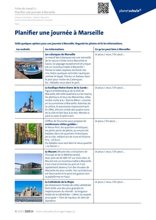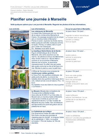 Aus Fotos und kurzen, französischen Texten entsteht ein Tagesausflug nach Marseille. Dabei werden unregelmäßige Verben geübt.