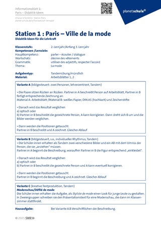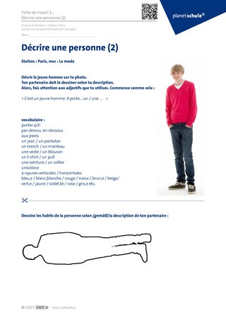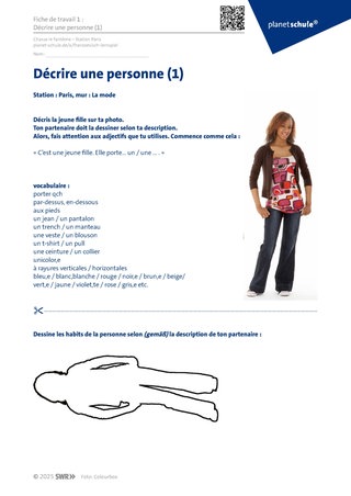 Französische Adjektive: Die Schüler lernen Personen anhand von Kleidung und Farben zu beschreiben. Unterrichtsmaterial ab 2. Lernjahr.