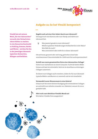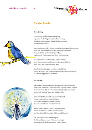 Im Unterrichtsmaterial finden sich die vier Sonette, die Vivaldi seinem Werk „Die vier Jahreszeiten“ bei der Veröffentlichung 1725 beigelegt hat.