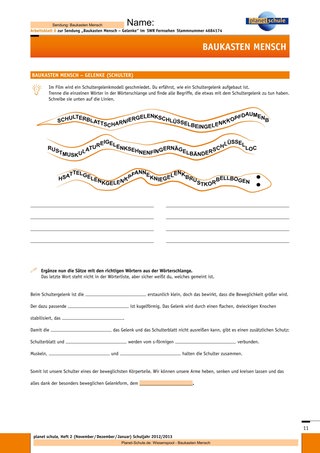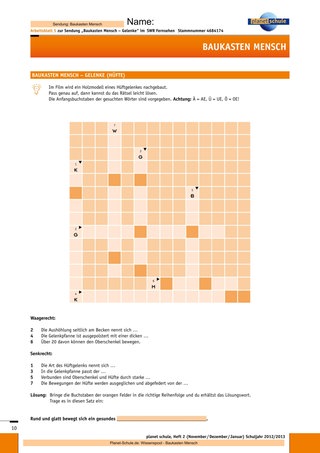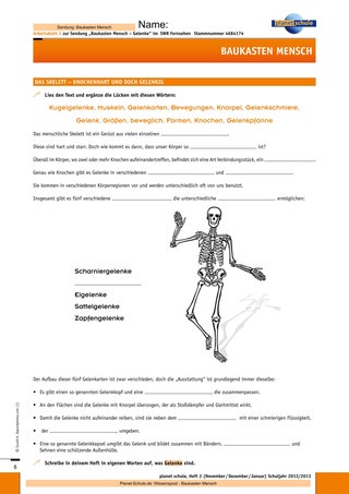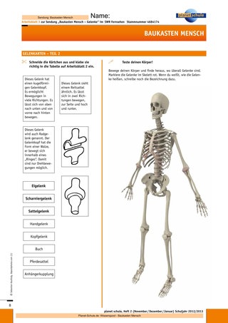 Der Film „Baukasten Mensch – Gelenke“ bietet zusammen mit den Arbeitsblättern eine anschauliche (Vertiefungs-)Möglichkeit des übergeordneten Themenbereiches „Menschliches Skelett“.