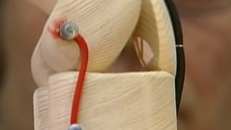 Wenn man nun den „Gelenkkopf“ in die „Gelenkpfanne“ steckt kann man die Bewegung durch das Hin- und Herkippen des Stiftes nachempfinden.