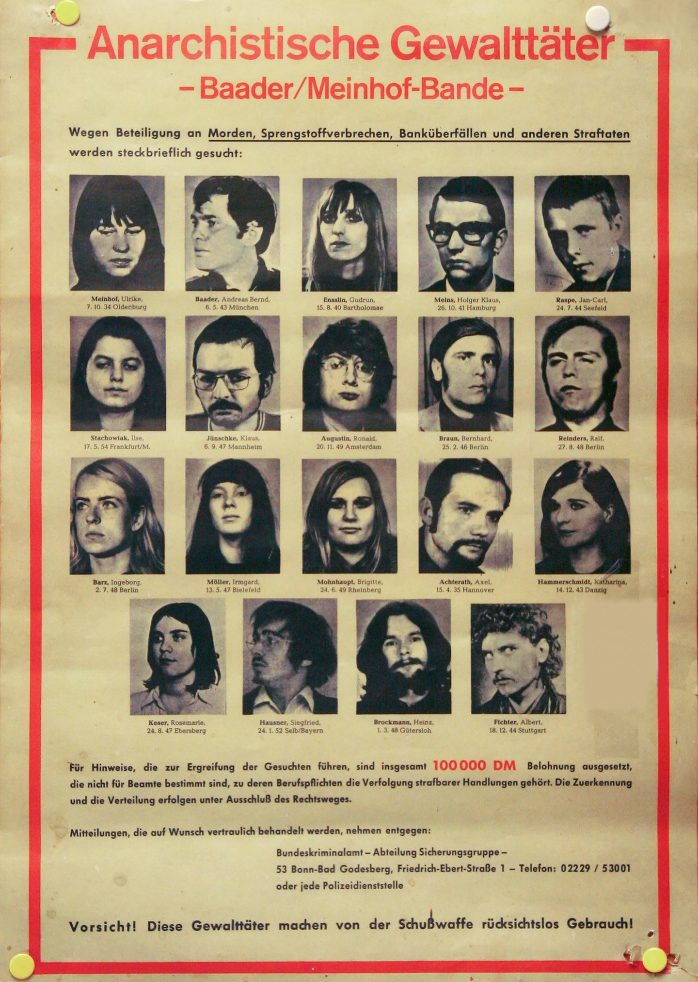 Als Reaktion auf die Ausweitung des amerikanischen Bombenkriegs in Vietnam verübt die RAF 1972 bei ihrer so genannten „Mai-Offensive“ Anschläge auf US-Einrichtungen in Frankfurt und Heidelberg, bei denen fünf US-Soldaten sterben. Bei einem Attentat auf das Springer-Hochhaus in Hamburg werden 17 Angestellte verletzt. Obwohl es zuvor mehrere Warnanrufe gegeben hatte, war das Gebäude nicht geräumt worden. Es folgen Anschläge auf ein Polizeirevier in Augsburg und das Landeskriminalamt München; die Ehefrau des BGH-Richters Buddenberg wird bei einem Bombenanschlag, der Buddenberg selbst galt, schwer verletzt.