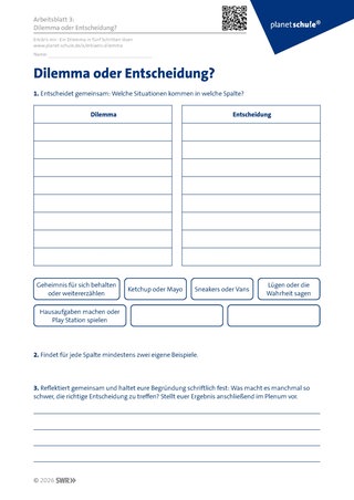 Material: Arbeitsblatt 3: Entscheidungen treffen und reflektieren
