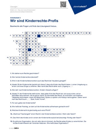 Zum Abschluss kann Arbeitsblatt 3 „Wir sind Kinderrechte-Profis“ bearbeitet werden, um zu testen, was die Schüler:innen rund um Kinderrechte alles mitgenommen haben. Offene Fragen werden geklärt.