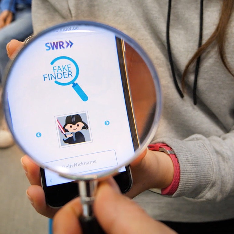 Das Quiz bietet Aufgaben in drei Levels. In Level eins müssen die Schülerinnen und Schüler Inhalte nur einschätzen und als "FAKE" (Daumen runter) oder "NOT FAKE" (Daumen hoch) bewerten.
