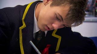 Der 14-jährige Fletcher wohnt wie die Hälfte der Schülerinnen und Schüler nicht auf dem Campus des britischen Internats, das er besucht: Er lebt noch zuhause bei seinen Eltern und kommt jeden Tag mit dem Bus zur Schule.