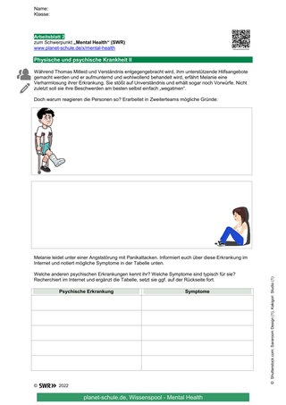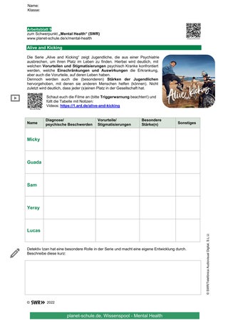 Filme und Unterrichtsmaterial zum Thema „psychische Erkrankungen“ setzen eine intensive Vorbereitung seitens der Lehrkraft voraus. Schüler:innen könnten durch das Thema getriggert werden. Es ist daher ratsam, eine weitere Person hinzuzuziehen (Lehrkraft, Schulsozialarbeiter:in, o.Ä.) Sie sollte mit anwesend sein und gegebenenfalls auf einzelne Schüler:innen gezielt eingehen können.