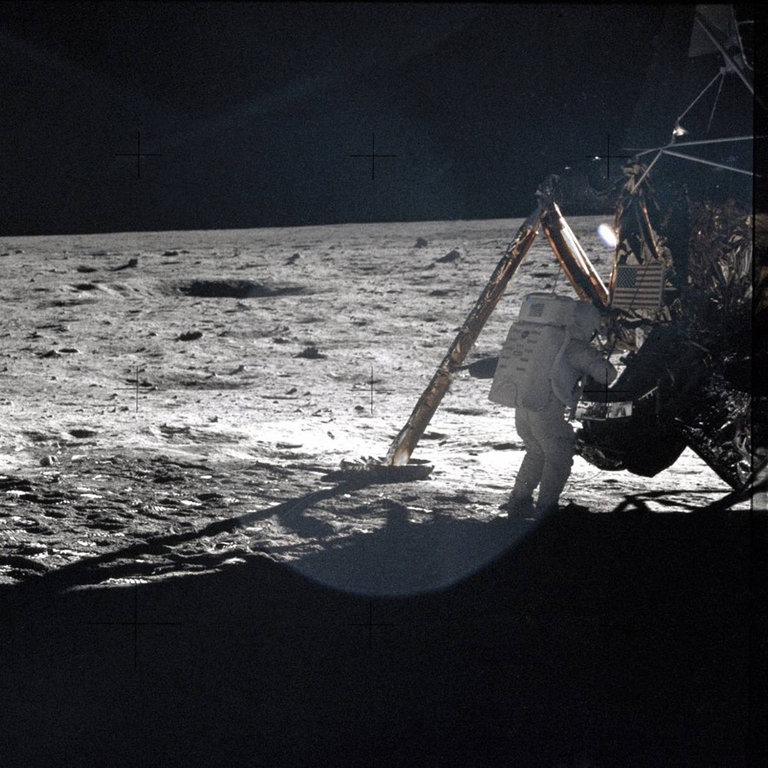 Das interaktive Element „Mission Mond“ fasst in einer Timeline nochmals alle wichtigen Ereignisse auf dem Weg zur bemannten Mondlandung zusammen. Die mächtige Mondrakete Saturn V beeindruckt mit ihren atemberaubenden Daten und man kann die Mondlandefähre sicher auf dem Mond zur Landung bringen – wenn der Treibstoff reicht!