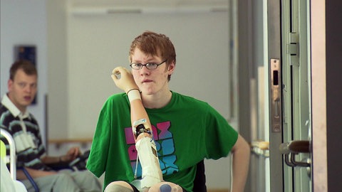 Aufmunterung kann Stefan gebrauchen: Sein Armstumpf ist so kurz, dass die Orthopädietechniker Schwierigkeiten haben, eine funktionierende Prothese zu entwickeln. Er hat Angst: Wird er mit diesem künstlichen Arm überhaupt etwas anfangen können? Und: Wie wird er zu Hause zurechtkommen, mit zwei Beinprothesen, hoch in den dritten Stock, ohne Aufzug?