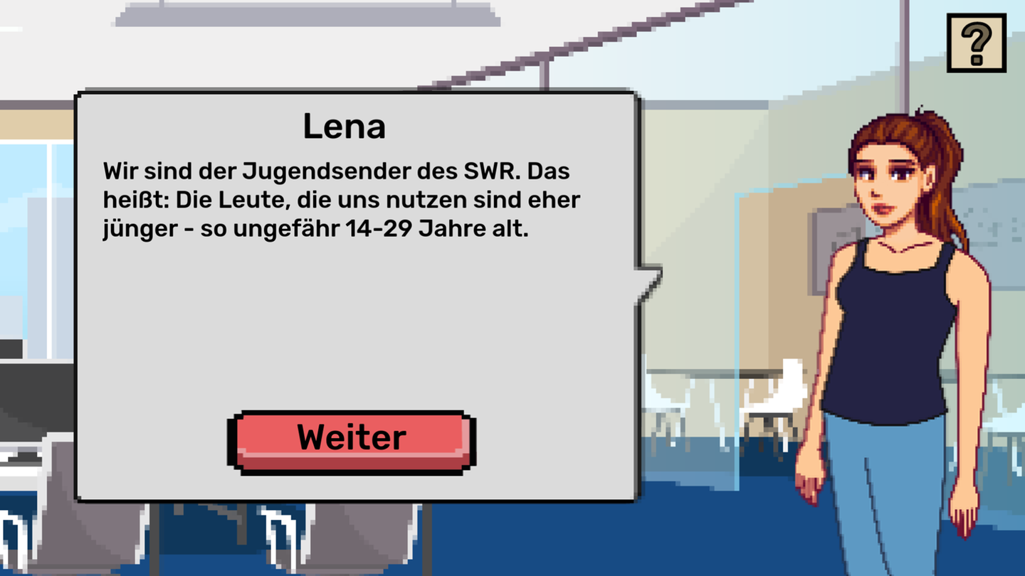 Über das Fragezeichen rechts kannst du grundsätzliche Fragen stellen. Hier erfährst du etwas über die Zielgruppe von DASDING. Das ist wichtig, damit du weißt, welche Themen die Hörer:innen interessieren.