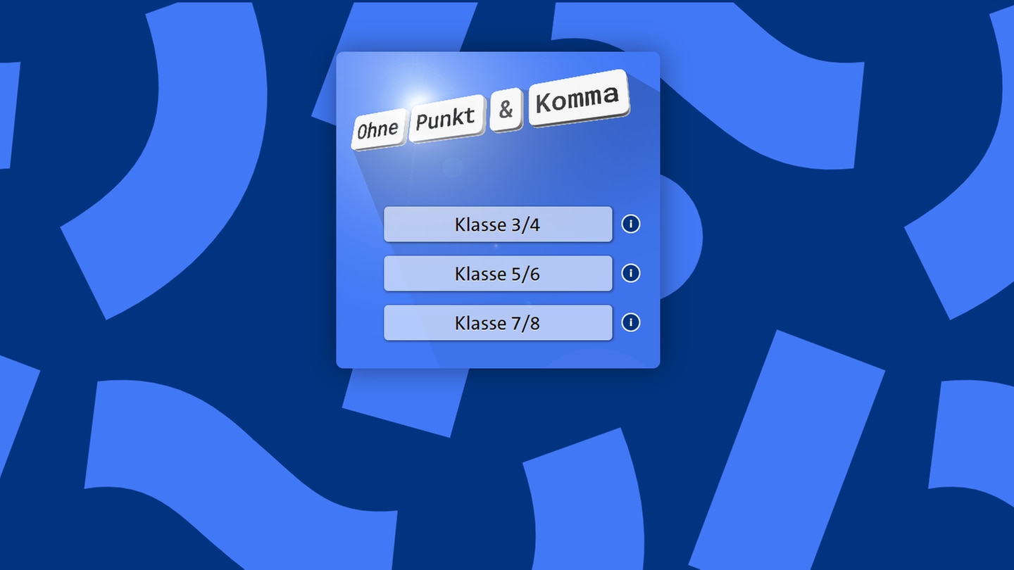 Mit „Ohne Punkt & Komma“ macht das Lernen von Kommasetzung und anderen Satzzeichen richtig Spaß! In diesem interaktiven Lernspiel für Schüler:innen der Klassen 3 bis 8 geht es darum, Punkt, Komma und Fragezeichen an die richtige Stelle im Satz zu setzen.