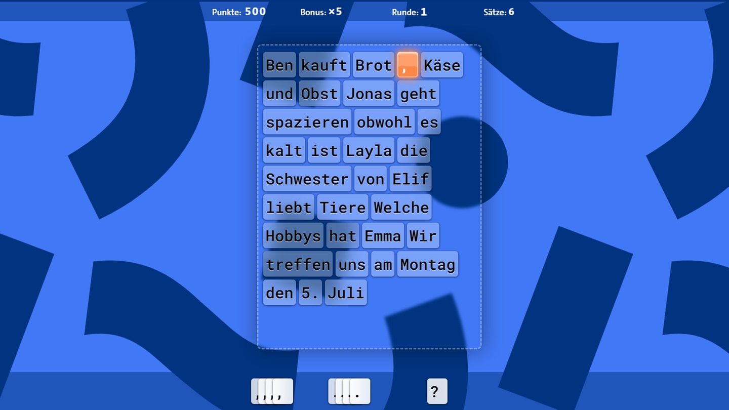 - Ein falsches Satzzeichen? Dann verlierst du deine Bonuspunkte, aber kannst weiterspielen!