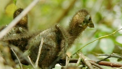 Diese Theorie formulieren Schüler sehr schnell und werden auch im nächsten Abschnitt des Filmes in ihrer Annahme bestätigt. Eine kurze Sequenz über die Entstehung und ursprüngliche Bedeutung der Federn (Wärmeerhalt, Balz, Tarnung) verdeutlicht, dass Federn schon vorhanden waren, bevor sie erstmals zum Fliegen eingesetzt wurden. Eine computeranimierte Szene zeigt, wie man sich Archäopteryx und sein Fliegenlernen bis vor Kurzem zumeist vorgestellt hat - als Kletterer, der von Bäumen herabgleitet. Unterstützt wird diese Hypothese durch den Vergleich mit dem Hoatzin, einem rezenten Vogel, einem südamerikanischen Verwandten des Kuckucks. Mit den Bildern der Hoatzinküken, die mit bekrallten Flügeln in ihr Nest zurückklettern, scheint die Baumklettererhypothese bestätigt.