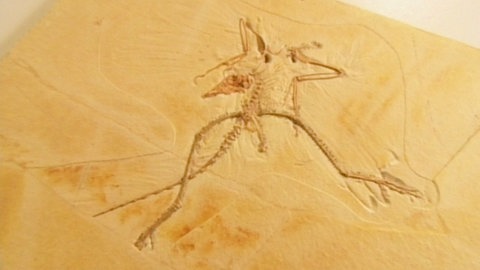 Mit Archäopteryx, dem Urvogel, beginnt die Spurensuche in der Vergangenheit. Dr. Mayr zeigt am bisher letzten Fund, dem zehnten Exemplar, die wesentlichen Merkmale des fossilen Vogels. Trotz der vielen Kennzeichen für kleine Raubdinosaurier, zeigt Archäopteryx mit den Federn, das „Vogelmerkmal“. Wenn Archäopteryx, wie man heute annimmt, der Stammvater der Vögel ist, dann stammen die Vögel von kleinen Raubsauriern ab. Man könnte also annehmen, dass sie das Fliegen genauso wie ihre Verwandten gelernt haben: Über den Gleitflug, die Baumklettererhypothese.