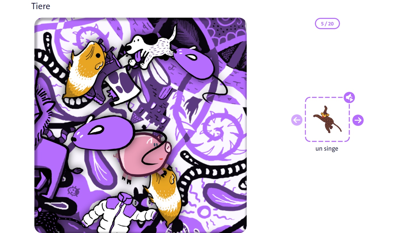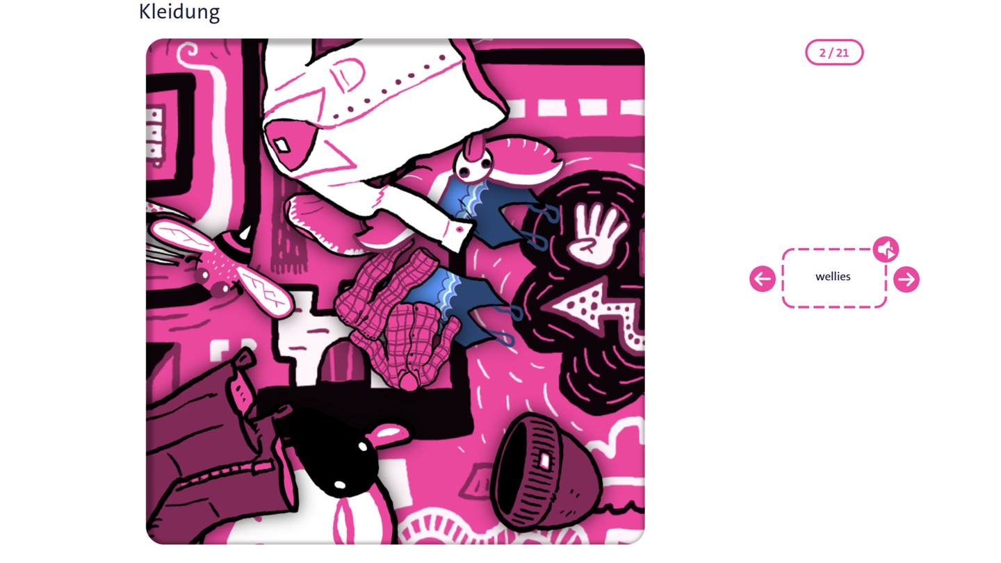 Dann kann es auch schon losgehen! Der Gegenstand, den du im Wimmelbild suchen sollst, wird dir rechts angezeigt. Du kannst dir die Wörter auch vorlesen lassen. Jede Runde hat etwa 20 Vokabeln.