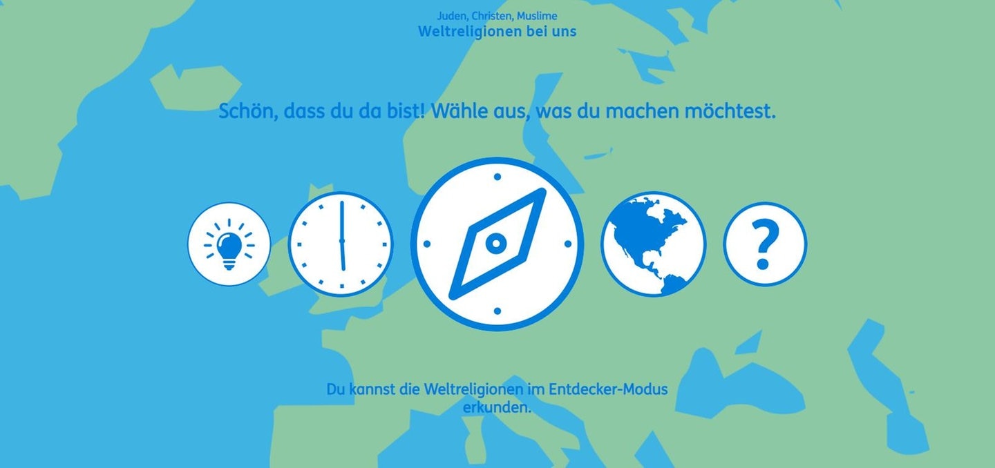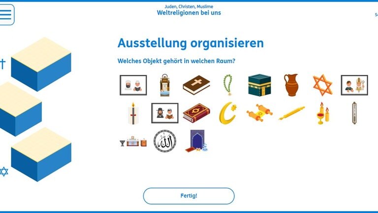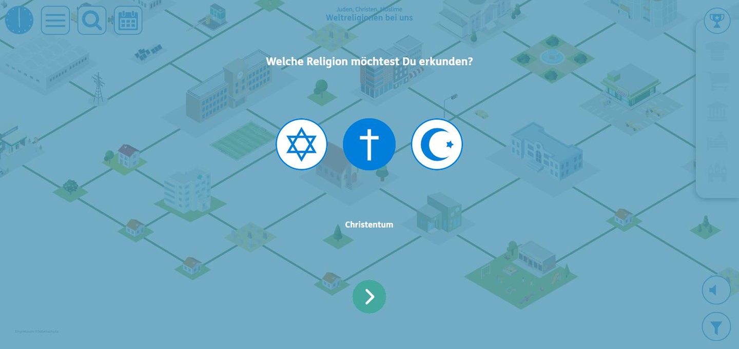 Mit dem Lernspiel können Schüler*innen ab Klasse 3 die drei Weltreligionen Judentum, Christentum und Islam kennenlernen und sie miteinander vergleichen. Die drei Religionen werden hier in der Reihenfolge ihrer historischen Entstehung genannt. Das Lernspiel ist auf allen Endgeräten online nutzbar – in der Schule oder zu Hause.