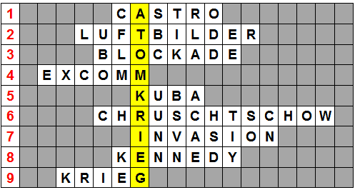 Bei diesen Kreuzworträtseln sollen die Grundinformationen herausgearbeitet werden. Sie sollen dazu dienen, Zusammenhänge zu erkennen und bestimmte Aspekte der Kuba-Krise zu verstehen.