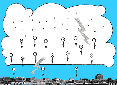 und Eiskristallen. Die Reibung hat eine Ladungstrennung