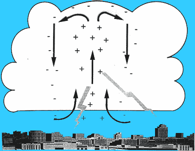 Ladungsverteilung an Gewitterwolken an, indem er sie
