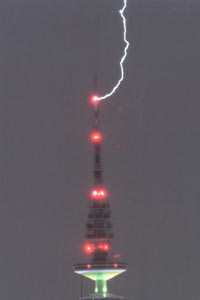 in hohe Gebäude, z.B. Funk- und Kirchtürme,