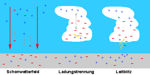 Wolke. Dabei sammeln sich die leichten, positiv geladenen