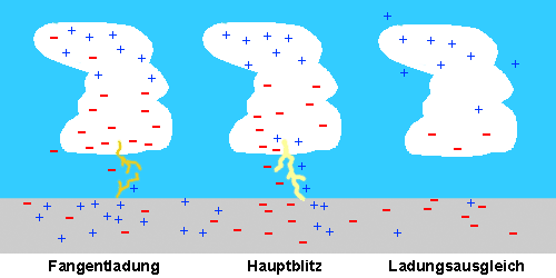 der Blitzkanal geschlossen ist, bewegt sich die Ladung