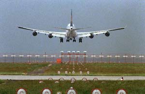 und das Flugzeug kontrolliert dem Erdboden nähern.
