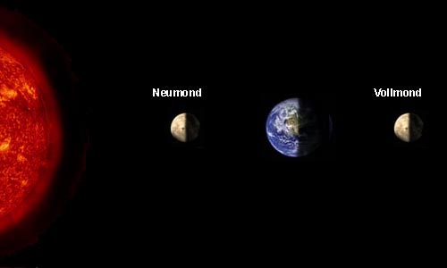 | Die Konstellation von Sonne, Erde, Neu- oder Vollmond bei Springflut |