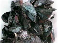 z.B. die schwarzglänzende Miesmuschel, die sich