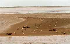 Niedrigwasser stundenlang aus dem Wasser ragen.