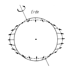 um die Erde bewegt. Doch die Gezeitenkräfte wirken