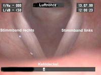 Die Stimmbänder sitzen hinten im Rachen. Auf