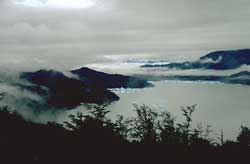 zusammen. Diese Wolken bilden eine strukturlose graue,
