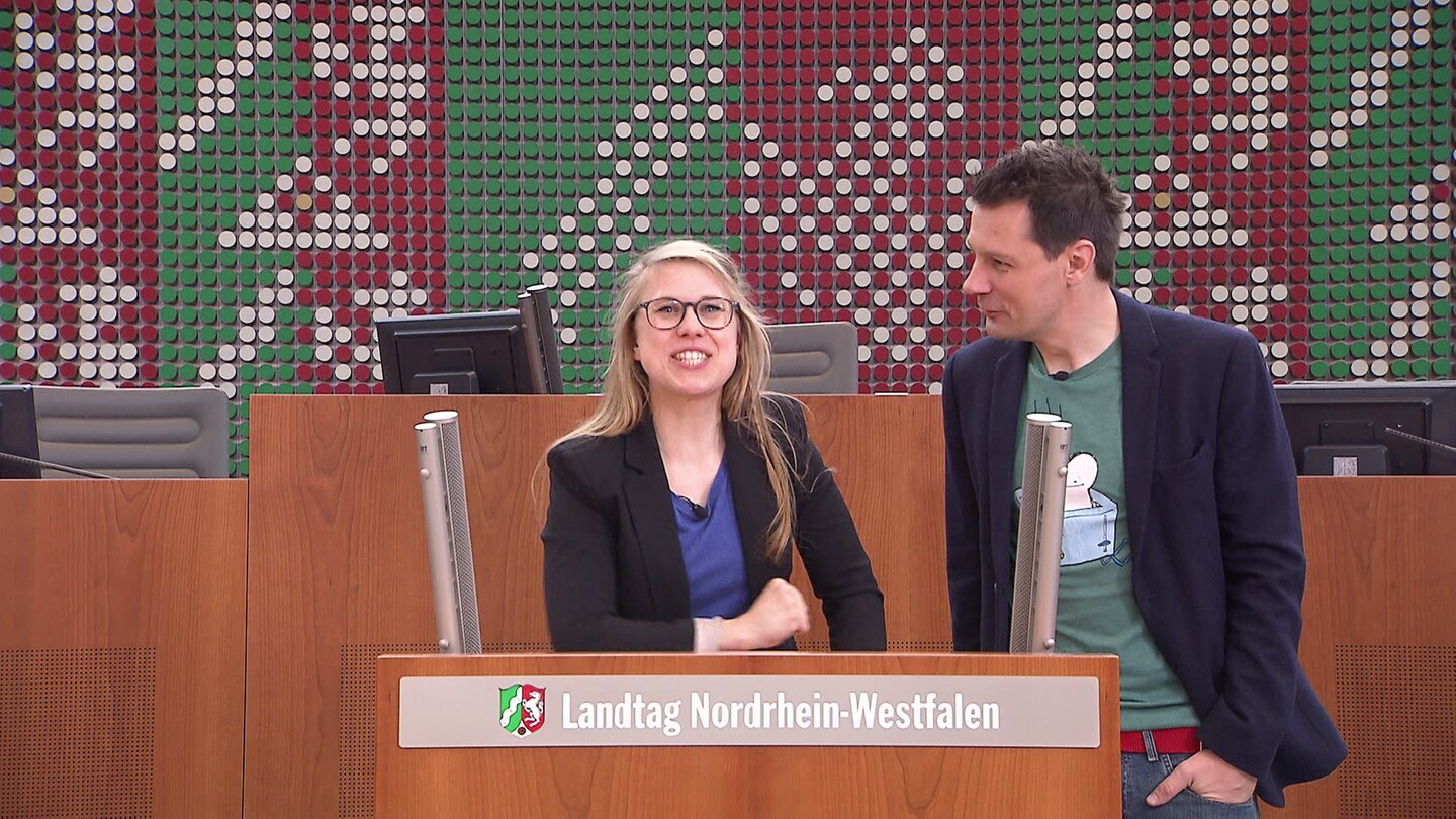 Am geografischen Mittelpunkt von Nordrhein-Westfalen beginnt Esthers und Andrés Reise. Erster Halt: der Landtag in Düsseldorf. Von dort aus geht es für die beiden digitalen Schnitzeljäger weiter mit der Frage: Wer hat die größte Hochzeit in NRW gefeiert? Und wie schaffen es Esther und André, einen Fluss, ein Pferd und eine Blume auf ein Stück Stoff zu bringen? Fragen über Fragen…